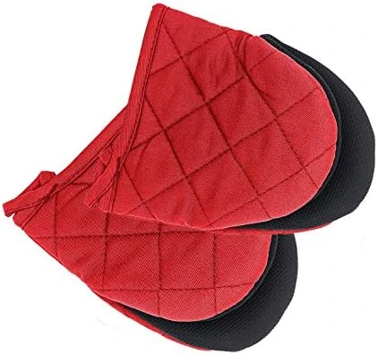 - Multiple Use: Heat resistant oven mitts mini gloves are outstanding in gripping hot pans and hot dishes quickly and easily. It’s perfect for oven, pot, trivet, grill, casserole, hot cookware, unscrewing a hot light bulb, BBQ, camping and so on.
