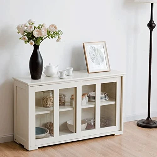 - Great Gift: Thanks to its simple design and practical function, this kitchen storage cabinet with glass sliding door will be an ideal gift for mother’s day, birthday, housewarming, wedding, valentine’s day, thanksgiving.