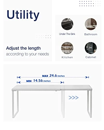- EASY INSTALLATION: Easy to assemble with a clear manual. If you purchase 2 of these expandable shelves set you can stack one of top of another thereby creating a two-tier storage space.