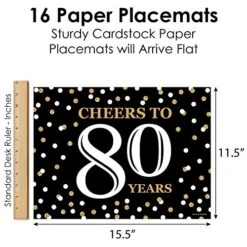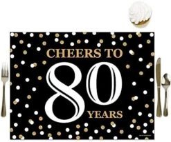 - PAPER PLACEMATS: Set of 16 Adult 80th Birthday – Gold placemats are professionally printed on sturdy cardstock paper. Each placemat is individually inspected and carefully packaged to arrive flat.