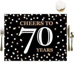 - EASY CLEAN UP: Adult 80th Birthday – Gold paper placemats SIZE 15.5 inches wide x 11.5 high. Made of sturdy cardstock paper, these disposable placemats will make it easy to clean up after the party is over. Party placemats are perfect for at-home dining tables or to bring to your favorite restaurant as an easy decoration.