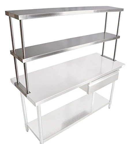- This double level overshelf measures 48 inches long and 12 inches wide. The lower shelf is adjustable for convenience