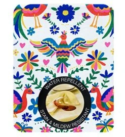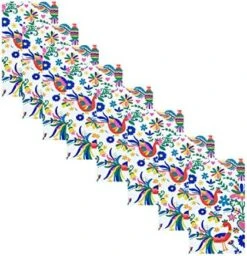 - Styling: Newbridge Otomi Birds Folk Art Indoor/Outdoor Print Fabric Tablecloth has an advanced 100% polyester tablecloth construction features the eclectic styling of traditional Mexican Otomi prints with dramatic feathered birds, hearts and floral motifs in pink blue yellow and green on a white background.