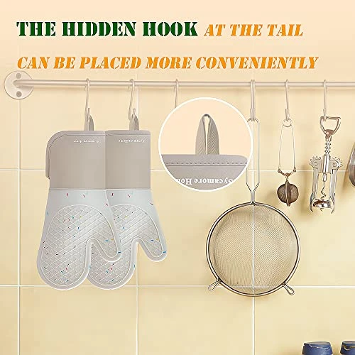 - Easy to clean, any stains on the gloves can be easily washed with water, and the hidden hook at the tail can be placed more conveniently, it is a good Kitchen hander