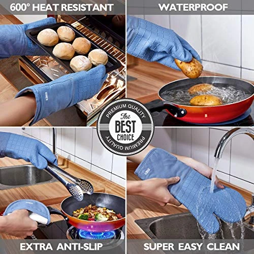 - ALL-ROUND PROTECTION – Extra Long 14.7 inches PRO silicone oven mitts can protect your hands and your wrists totally same time. And the silicone surface is waterproof that oven gloves can prevent grease spatter, hot oven racks and steam scalds injuries when cooking or draining. You can even catch items from hot water or beer from ice water.
