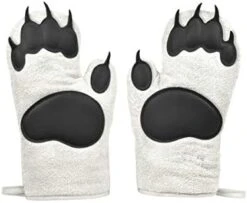 - QUALITY MATERIALS: These insulated oven mitts feature “paw” pads constructed from heat resistant silicone, letting you handle hot foods easily, even when it’s bear-y hot!