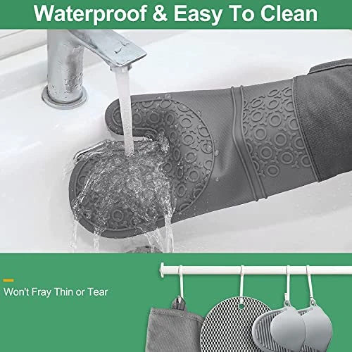 - 【Easy To Clean】The difference with other cotton oven gloves is that our silicone oven gloves are stain-resistant and easy to clean, just rinse with water, these oven gloves are also machine washable. Either way, they are very easy and convenient.