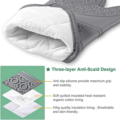 - 【Textured, Non-Slip Design】Our oven mitts have a silicone non-slip textured surface, which can improve your grip, control, and stability on hot, heavy, or smooth objects.