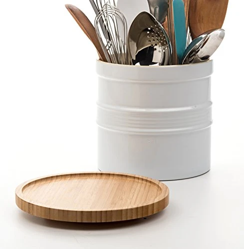 - Oversized Tool Crock measures 7-1-2″ dia. x 7″ tall and is Dishwasher Safe – (pictured utensils not included)