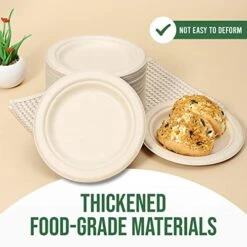 - STURDY ENOUGH FOR THE BIGGEST MEALS: Need a plate that can handle your heartiest meals? TaidMiao bagasse paper plates are sturdy and durable, so they can hold up to heavy foods without breaking or buckling. The dinner paper plates are also microwavable and refrigerable so you can reheat or store your leftovers with ease.