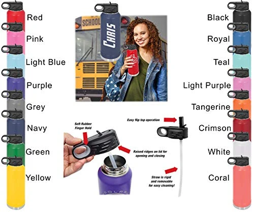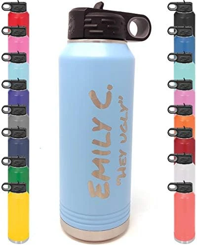 - Stay hydrated in style: A large 32 ounce capacity water bottle personalized with your text and available in 16 modern colors. Keep your hydration cold all day long.