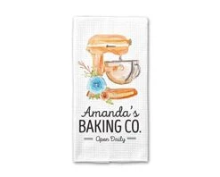 Personalized Baking Co. Kitchen Towel | Custom Waffle Weave Dish Towel | Personalized Kitchen Towel | Housewarming Gift | Wedding Gift | Housewarming Gift | Mixer Kitchen Towel | Baking Towel