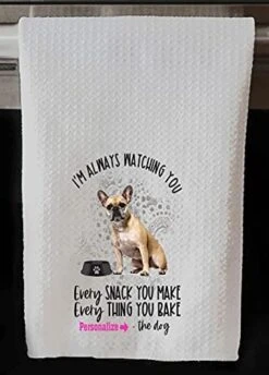 - HOW IS IT MADE? The design is dyed into the fabric so it will not fade, crack or peel. You can’t feel it! Absorbent microfiber lightweight waffle weave material. Great for everyday use or as kitchen decor. Measures 16″x24″. Machine wash and dry.