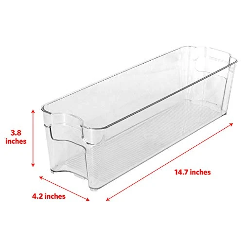 - STACKABLE DESIGN β Make more of the space that you have with this 14.5×4.2-inch rectangular basket. This holder measures 4 inches deep, and its stackable design lets it efficiently store fruits and vegetables, condiments, spices, breast milk and more!