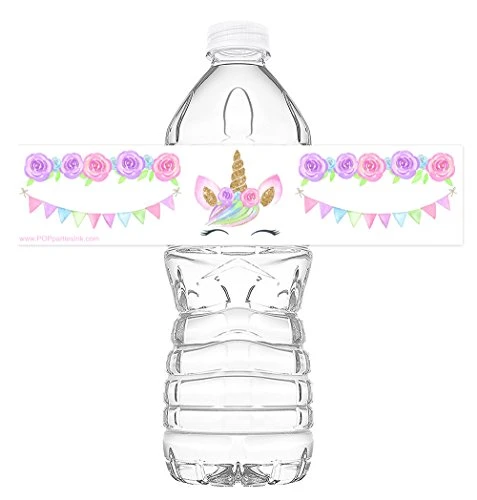 POP Parties Magical Unicorn Bottle Labels – Set Of 20 Waterproof Bottle Labels – Unicorn Party Supplies – Unicorn Party Decorations – Lashes