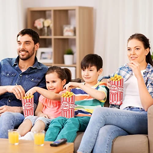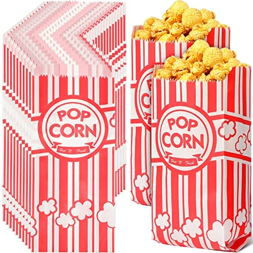 - Classic and Simple Design: movie theater popcorn bags mainly adopt the red and white color scheme, with the classic striped pattern, look very simple and generous, which are nice choices to use these bags to fill the popcorn. There are no worrying about messing up by your kids, and will give them just the right amount of their favorite treats