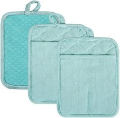 - 5. FINE WORKMANSHIP AND DURABLE USE: WORKMANSHIP QUALITY ASSURANCE: Strictly follow the sewing standard of 1-inch 8-9 stitches, which makes fabric and silicone perfectly, durable and smooth combination. Each pot holders will be tested 7 times by QC to make sure high quality.