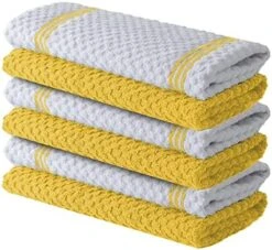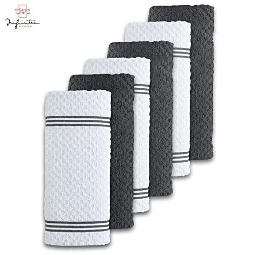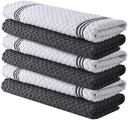 - LONG LASTING & ENVIRONMENT FRIENDLY: Our kitchen towels maintain their premium feel and classic design even after hundreds of washes, reducing your waste of paper towels. This pack of 6 will allow you always to have a fresh towels handy