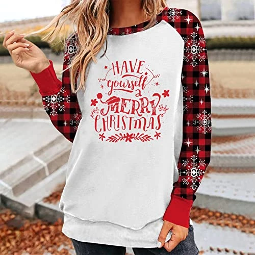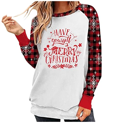 Pullover Sweatshirts For Women Fall Crew Neck Sweatshirts Long Sleeve Christmas Print Plus Size Pullover Top Streetwear