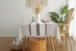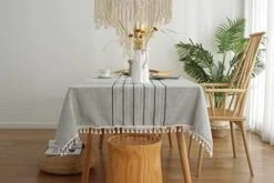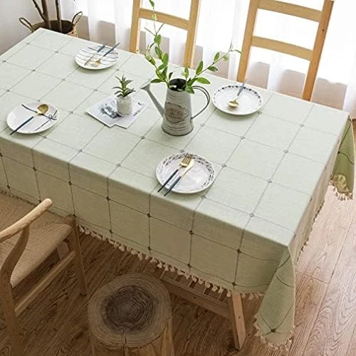 - 【DELICATE PRINTING】- Featuring elegance solid stitching pattern on cotton linen fabric with beautiful tassel edge. This square tablecloth is used to decorate the dining table, and with shiny tableware and clean porcelain plate, it can make the food look more delicious and increase your appetite.