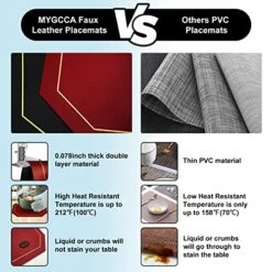 - EASY TO CLEAN – Easy Care, Wipe or rinse clean and wipe dry. if there is stains stuck in the leather placemats, wash in warm soapy water and wipe dry.
