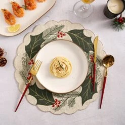 Be the first to review “Round Placemats Set Of 4, 15 Inch Christmas Placemats With Holly Leaf, Rustic Linen Dining Table Mats” Cancel reply