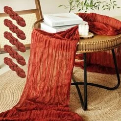 - 【Elegant Design】Unlike flat table scarf, this one with unique decorative wrinkles gives an elegant and ethereal impression. They drape and flow, and can be styled in many different ways. If you perfer a less sheer look, double it up or make a color collision. Refresh your table with the boho cheesecloth runner.