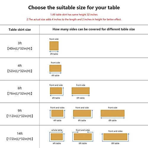 - Size: Please select the size according to the size of your table and how many sides you want to cover the table. The length of the table skirt you choose is the total length of the table edge you can surround.