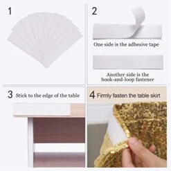- Easy to Install: There’s hook with adhesive on the back in the package. Stick this on the edge of the table, and then stick the loop sewn on the top edge of the table skirt to the hook.