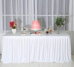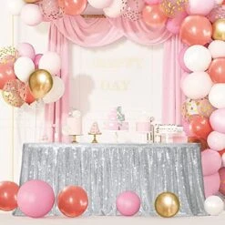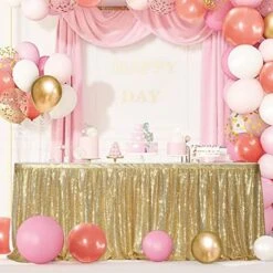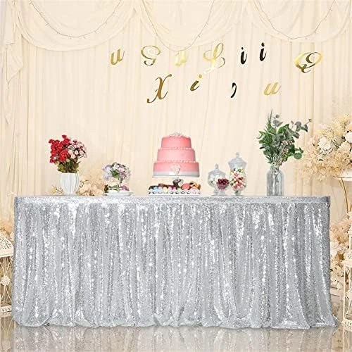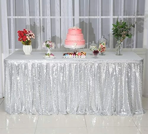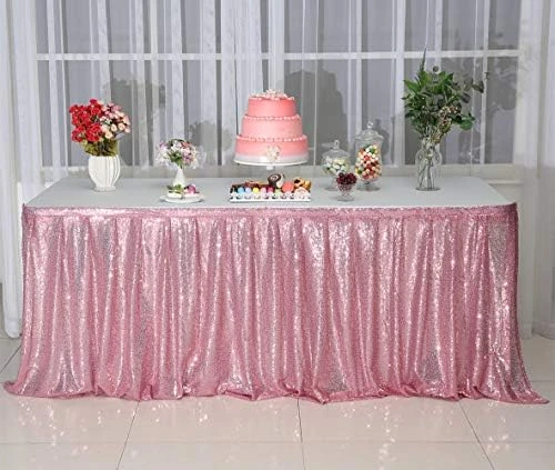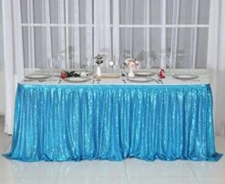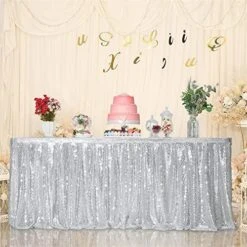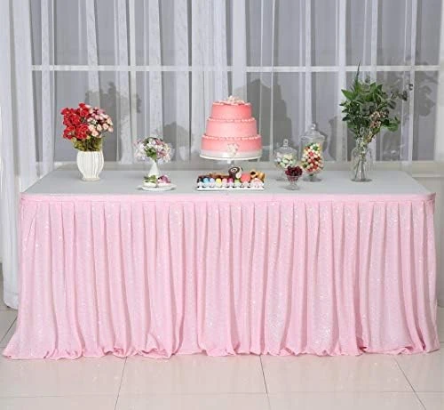 - The Only Sequin Table Skirt: This is the only sequins table skirt on the market, if you like glitter table skirt, it is perfect for you. This is the upgraded version of sequin tablecloth. What’s better than sequin tablecloth is that the sequin table skirt has beautiful pleats, which is suitable for tables of any shape. It’s non-transparent, has no seam, and still have the shiny looks as sequin tablecloth.