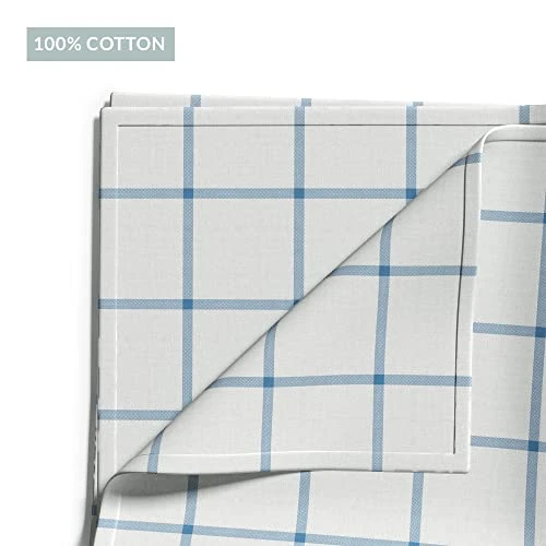 - Care info: Material: 100% Cotton fabric. Care Instructions: Machine wash cold with like colors. Do not bleach. Tumble Dry low. Warm iron as needed. Please note: As these are 100% cotton, slight shrinkage is possible if dried at high heat. Color: Light Blue/White.