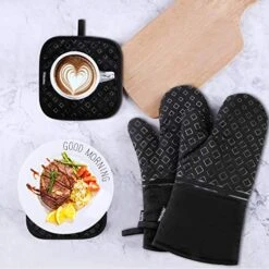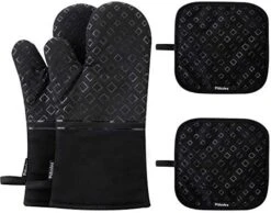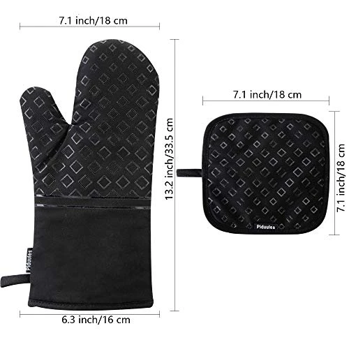 - ✔ SAFE TO USE – The oven mitts and pot holders are with unique grain on the surface to offer a stable and non-slipping grip while you moving hot ovenware or plates, while the exquisite stitching makes the mitts built to last.