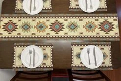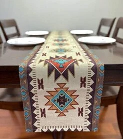 - Feature: Southwest Native American Inspired Tribal geometric design. Features vibrant colors and clear image with a stunning and unique design to enhance your home. Providing a perfect light and comfortable feeling throughout the year. Ideal for various occasions from formal dinners to casual buffets,it can add charm to your home decoration.No fading or abrasion. NOT a common usual table runner you can find anywhere. You also could find the match aztec table runner in our store.