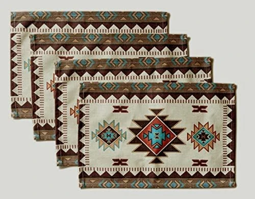 - Includes: 4PC southwestern geometric pattern placemats. 18 L X 13W Inches. Due to manual measurement and cutting, 1/2″ error may occur.