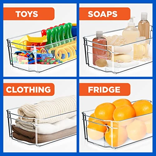 - EASY TO CLEAN: The clear refrigerator organizer bins stackable are super easy to clean just simply wash them w/ mild soap & water (Not Dishwasher Safe). Also ideal for cabinet, closet, bathroom, laundry room, craft room, office, playroom, garage use