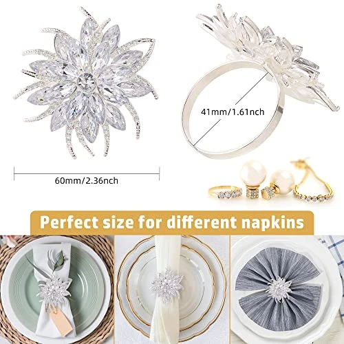 - ✿ Suitable size and durable material: The diameter of the ring is 1.57 inches, you can design the napkin of your favorite style, then decorate it with the napkin holder. Imported alloys, these napkin ring brackets are made of zinc alloy which are durable and sturdy. The beautiful rhinestone is charming and stunning. They are very suitable for dinner parties, festivals’ celebrations
