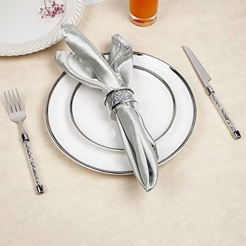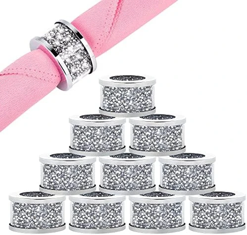 - 💎【Exquisite Material】Full of sparkle crushed diamond, crystal clear glass silver stainless steel framed. Glam serviette buckles cloth holder. Sparkle bling crushed diamond table settings metal rings decor. Make table setting gorgeous delicate.