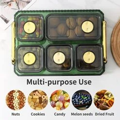 - Characteristic Design : The separate design makes snacks and dried fruits better categorized without mixing the flavors. Each smaller container can be easily removed from the larger tray.