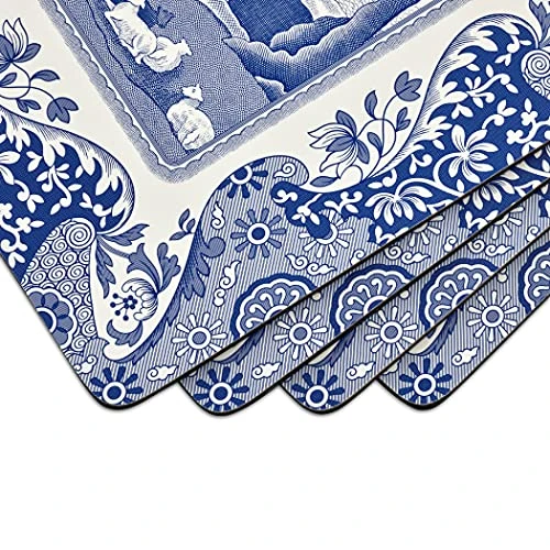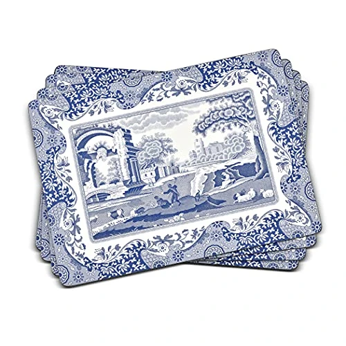 - PRODUCT SPECIFICATIONS: Package contains (1) Pimpernel Blue Italian Collection Placemats – Set of 4. Made of Cork-Backed Board. Each Placemat measures 15.7 inches x 11.7 inches. Product Care: Clean with a damp sponge and dry with a soft cloth. Do not immerse in water.