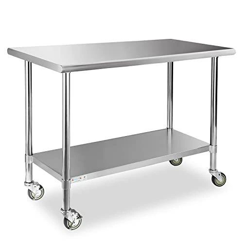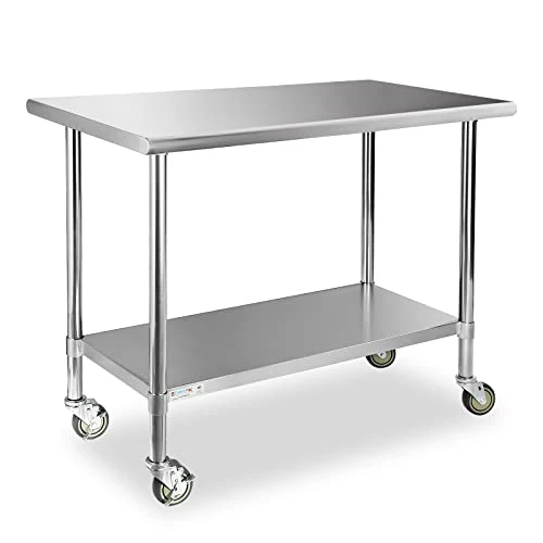 - Food Safe Material: Stainless steel table has been certified by NSF that can offer you better health protection. Stainless steel and polished surface offer greater rust and corrosion resistance and easy to clean and sterilize