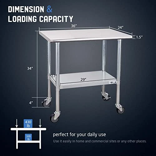 - Wide Application: Our professional stainless steel work table is very suitable for commercial and domestic use. It can be widely used in kitchens, hotels, hospitals, bars, gardens or any other places. The silver surface is polished to ensure that it looks fashionable and professional in the working environment