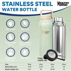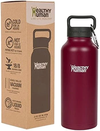 - EXPRESS YOURSELF WITH SIZE & COLOR OPTIONS: Available in 16 oz, 21 oz, 32 oz, and 40 oz sizes with multiple colors. Select your insulated water bottle size & color from the Amazon menus. Healthy Human stein flask water bottles with carrying lids make it convenient to take for hiking, camping, and the office.