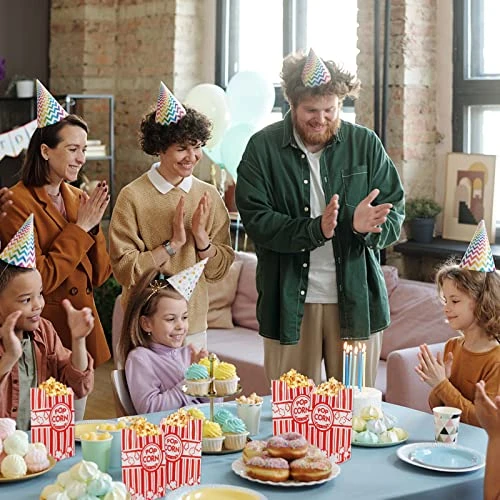 - 🍿Wide Applications: the popcorn bags bulk are not only suitable for popcorn but also for packing cookies, donuts, chocolates, candies or other snacks. They also can be applied to various occasions such as cinemas, weddings, birthday parties, carnival themed parties, Christmas, Halloween, costume parties, anniversary, celebration, farewell parties. Tips: No flat bottom but the paper popcorn bags are nice size and sometimes you can make it stand up by folding it.
