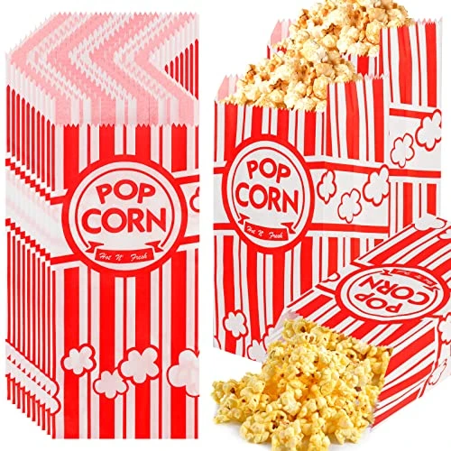 SUPWISER 100 Pcs Popcorn Bags, 1 Oz Movie Night Paper Popcorn Bags Bulk Individual Servings For Popcorn Machine Kitchen Party Movie Theater, Carnival Party, Decorations Supplies (100)
