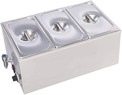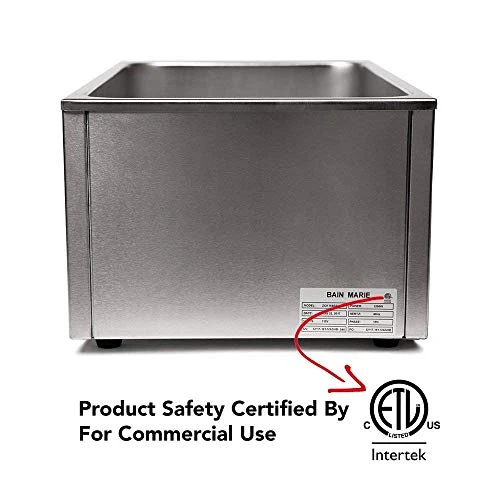 - ✪ INTERCHANGEABLE DESIGN: Standard Bain Marie base that works with 6” deep standard size compartments of all sizes, interchangeable to suit all occasions.✪ COMPARTMENTS INCLUDED: Two 1/2 size compartments (12L*10W*6H inches pan dimension) surely meets your needs for catered events, cafeterias, or busy concession stands.