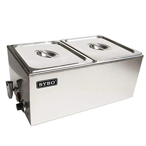 SYBO Commercial Grade Stainless Steel Bain Marie Buffet Food Warmer Steam Table For Catering And Restaurants (2 Sections With Tap)