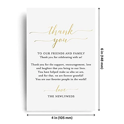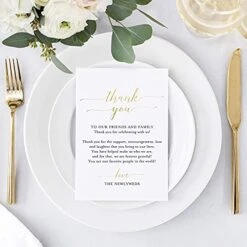 Thank You Place Setting, Gold Foil, Table Place Cards For Weddings, Receptions, Rehearsals, Dinner Parties, Events And Celebrations, 4″x6″ (50 Cards)
