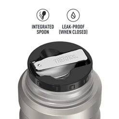 - SPOON INCLUDED: A full-sized spoon that folds for conveniently storing inside of lid. The insulated lid doubles as a built-in serving bowl