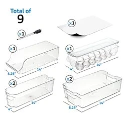 - STACKABLE ORGANIZER BINS: Rotate 180° to stack bins. Wide refrigerator organizer bins hold fruits and vegetables, large beverage bottles, or meal prep containers. Narrow fridge bins are perfect for kids’ snacks, condiments, juice boxes, or yogurt.