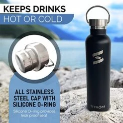 - Stainless Steel Leak Proof Lid – With the stainless steel top and silicone O-ring, you can be assured that this bottle won’t leak.